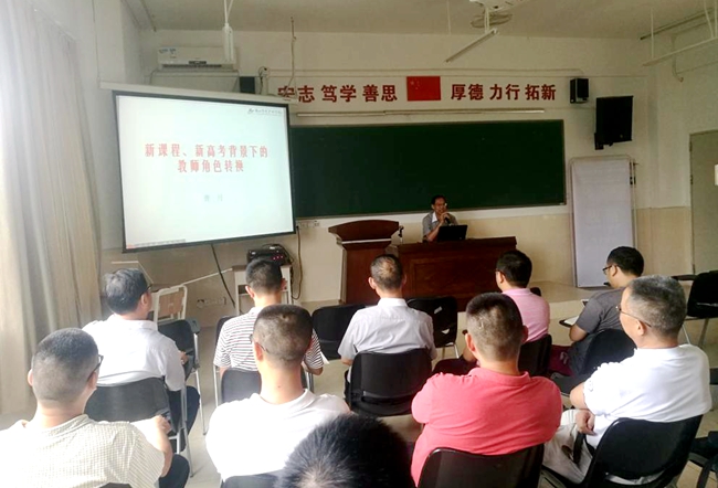 曹月老师以“新课程、新高考背景下的教师角色转换”为话题,分别从“教学关系需要重塑”、“教师角色需要重构”、“学习方式需要重建”、“教研活动需要创新”、“教学手段需要更新”五大方面出发,就新课程改革和新高考模式进行了深入浅出的解读。