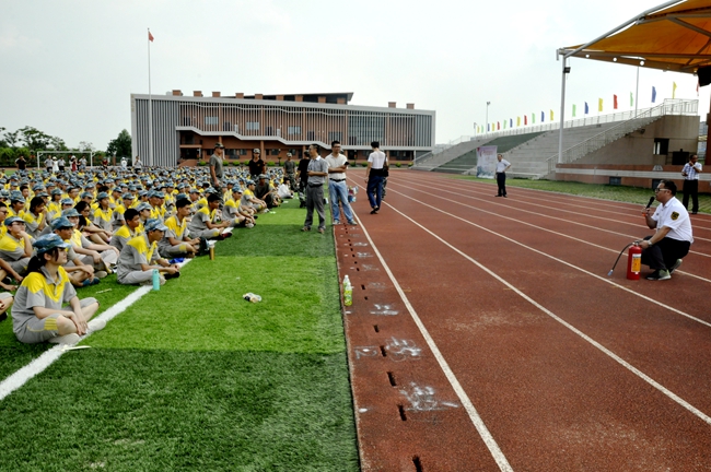 学校主管安全办的黎强主任详细介绍了活动“安全知识讲解课堂”、“消防逃生疏散演习”、“消防工具应用教学”三大环节。