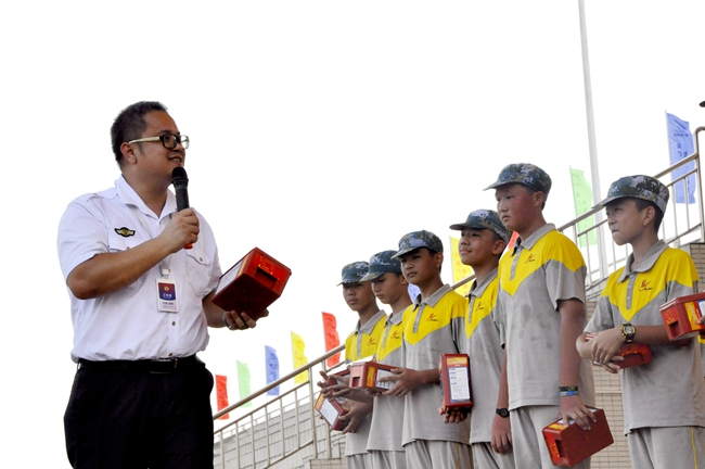 由广州市公安消防支队指派的第三方(消安防火中心)具有多年消防从业经验的专家级导师,为学生现场讲解火场逃生疏散的各项原理,提醒学生注意安全避险的步骤细节,要求学生严格按照现场人员的指引安排有序逃生。
