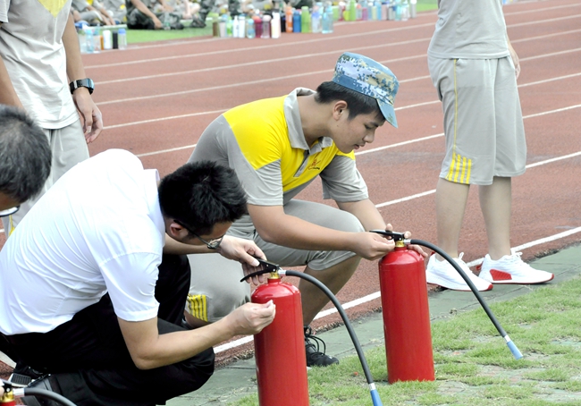 每班的学生代表在专家导师的鼓励指导下一一上阵,将刚刚学到的灭火器使用要诀立即实践一遍,大火还没来得及蔓延即被学生军团强大的“喷枪攻势”瞬时扑灭。