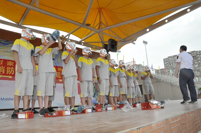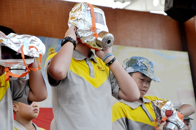 在专家导师的一一指导下,同学们头戴防烟防毒的护具,成功化身为“银盔骑士”。