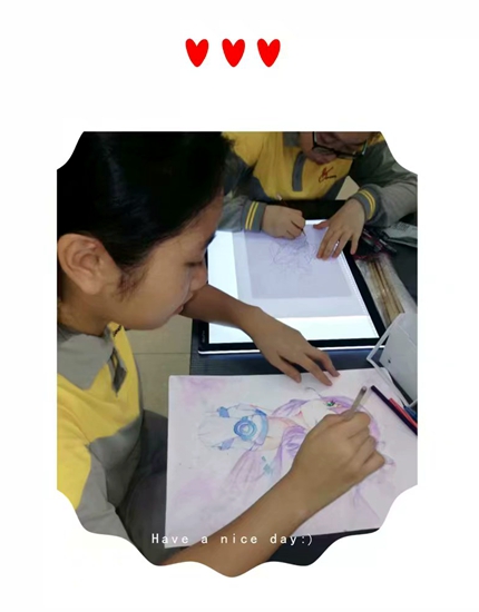 在广州市黄广中学的画室中,有深有浅、层层叠叠的笔画涂鸦,时而轻笔细描、时而浓墨重彩的动漫绘图,为我们开辟了一条条通幽曲径,一条条通往学生心灵深处那五彩斑斓的美丽世界……