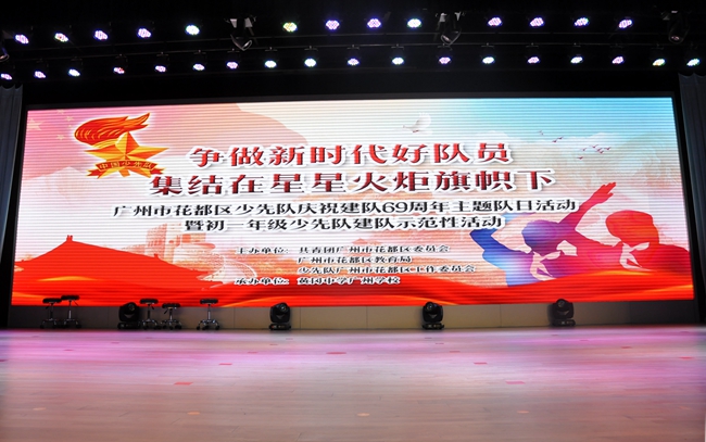 10月11日,广州市黄广中学承办的“争做新时代好队员——集结在星星火炬旗帜下”花都区少先队庆祝建队69周年主题队日活动暨初一年级少先队建队示范性活动于在英达礼堂隆重举行。