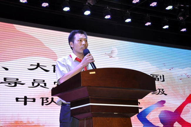 黄广学校团委副书记、少先队大队副辅导员周良发老师宣读初一年级中队成立决定,宣告初一年级各班级中队正式成立。