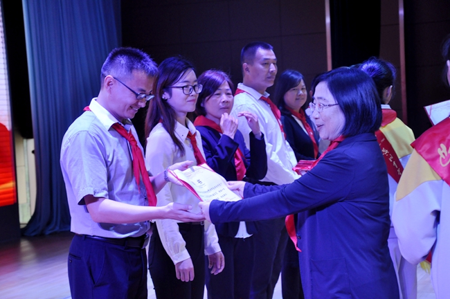 范小星校长、杨文化副校长则为初一年级各中队辅导员颁发聘任证书,并逐一向所有中队辅导员给予鼓励、表示支持。