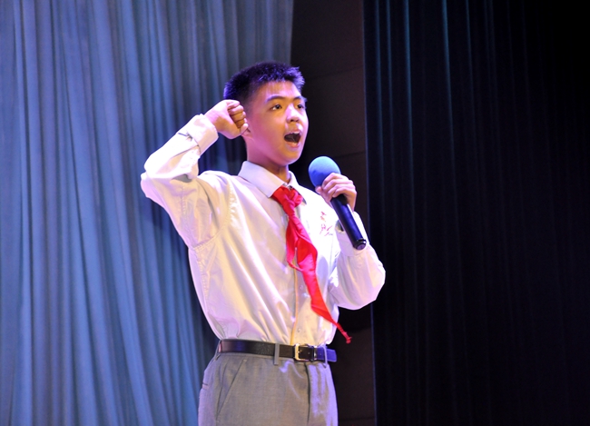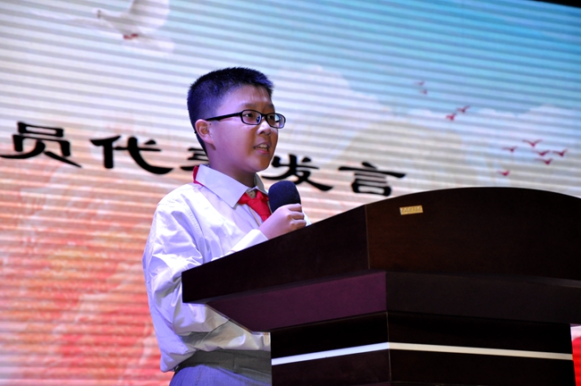“那一刻,我们便在心底默默告诫自己,我是一名光荣的中国少年先锋队队员,我要为飘扬的队旗增添新的光彩!我们需认认真真学习、踏踏实实做人,好好学习,天天向上!” 初一(3)中队王浩延同学代表少先队员们发出青春与理想、责任与担当的号召。