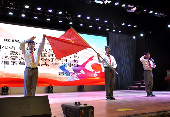 “我是中国少年先锋队队员,我在队旗下宣誓——我热爱中国共产党,热爱祖国,热爱人民,好好学习,好好锻炼。
