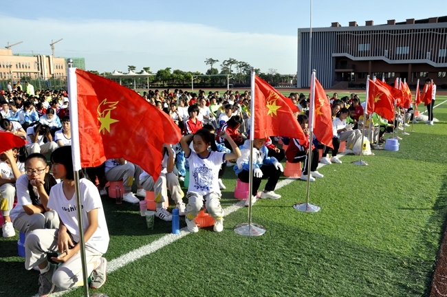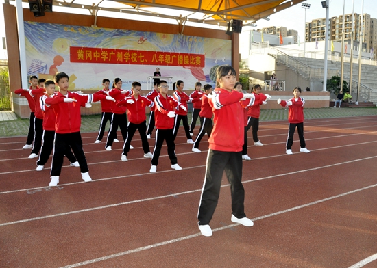 2018年10月,广州市黄广中学2018年七、八年级班级广播操大赛在田径场全面拉开帷幕。