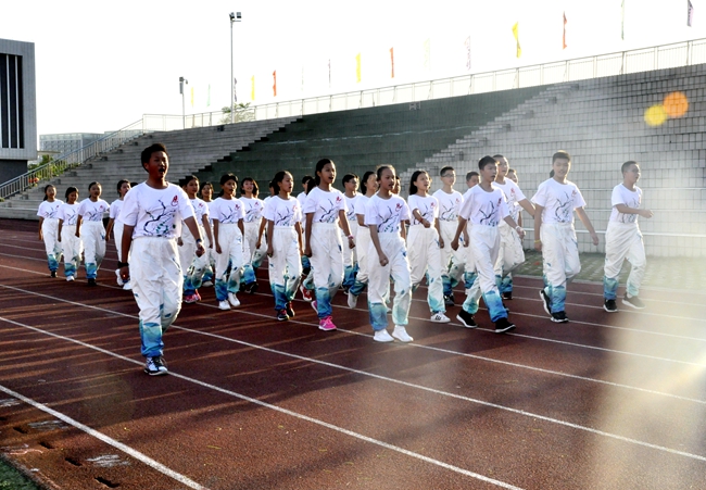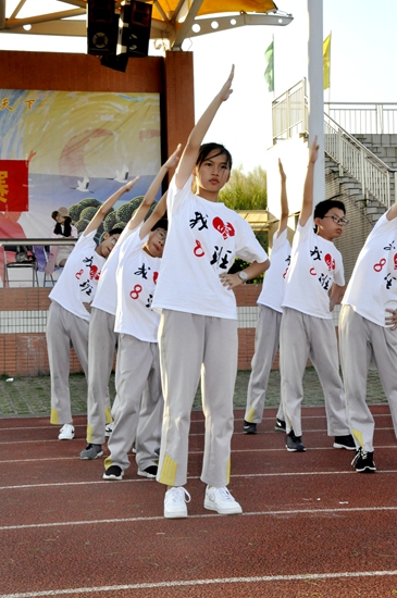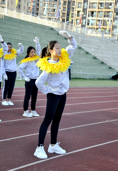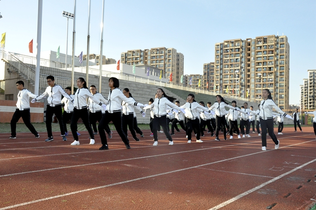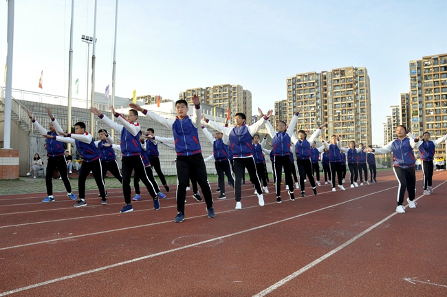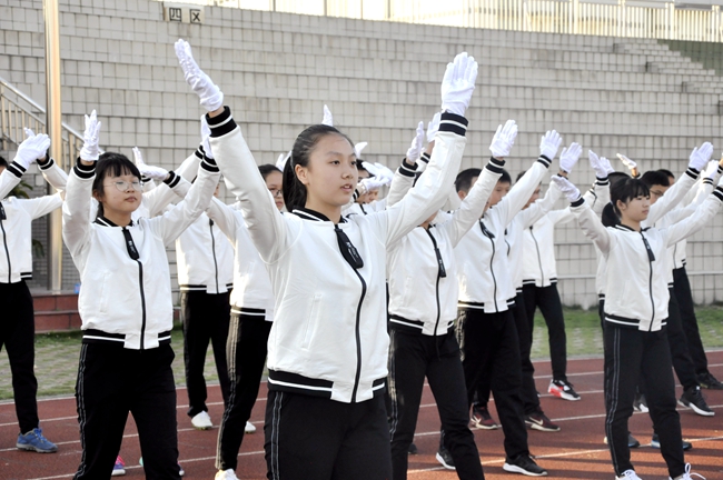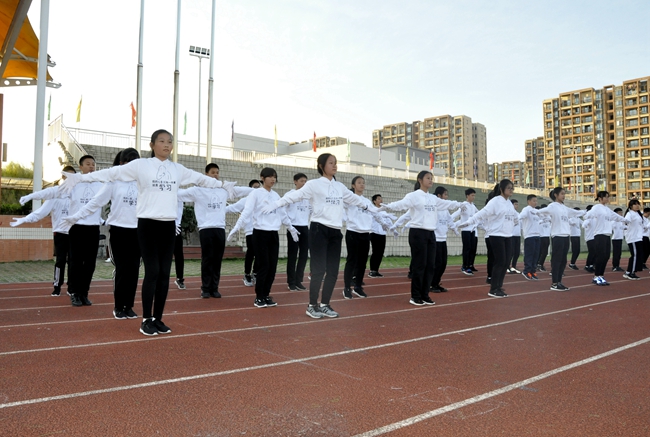 《放飞理想》的口令音乐时而优雅舒缓、时而轻快欢腾,参赛班级的学生在早已熟悉的旋律中畅快舞动,行云流水的动作释放出惊人的青春能量,不少班级更在固定的早操展演中注入吸人眼球的创新元素与班级个性文化,黄广学生热情欢快、积极进取、奋发向上的姿态、精神得到全方位的展现。
