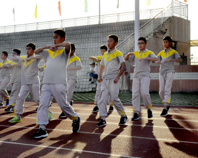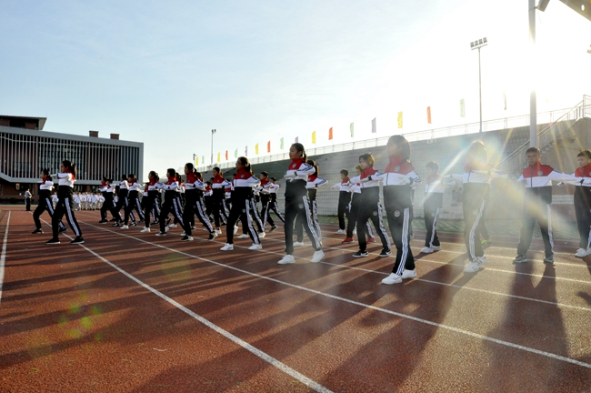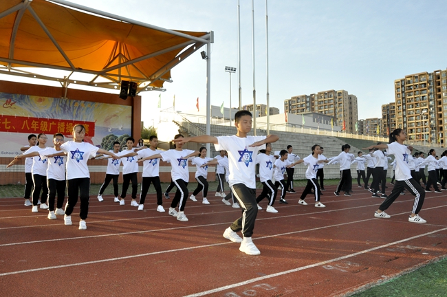本年度广播操大赛以“放飞理想,激扬青春”为主题,在初中部德育处及艺体发展中心的策划、组织、推进下成功启动,七、八年级全体学生踊跃参与,现场进行以班级为单位的广播操展示评比,范小星校长、杨文化副校长等领导亲自莅临比赛现场,对各班学生队伍的整体发挥与精神活力进行全程观摩,并为表现突出的获奖班级授予荣誉,给予鼓励。