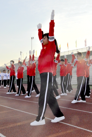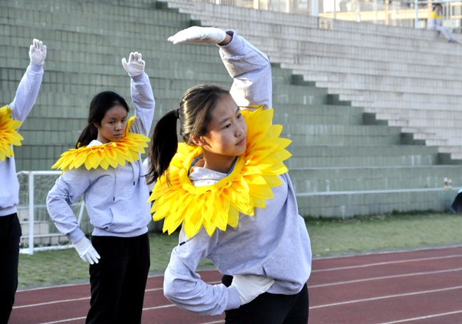 响亮的口号呐喊,整齐的步伐伸展,操场上弥漫着青春正盛的自信与活力……无论是踏步、伸展还是弓步、弹跳,赛场上的黄广学子认真对待每一套指定动作,伴随着动静变幻的旋律,配合着快慢有序的瞬间指令,班级队伍在紧随节拍、力求标准的基础上,通过强而有力的伸、展、屈、立展现出不同班级日常训练的亮眼成果,整齐划一的默契配合也倍显出班级团队内部独一无二的向心凝聚,赛场上奋力跃动的每一个身影都绽放出亮丽夺目的缤纷色彩,极为壮观。