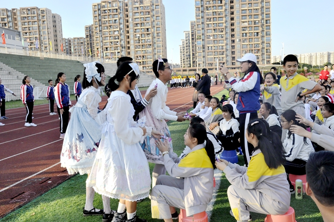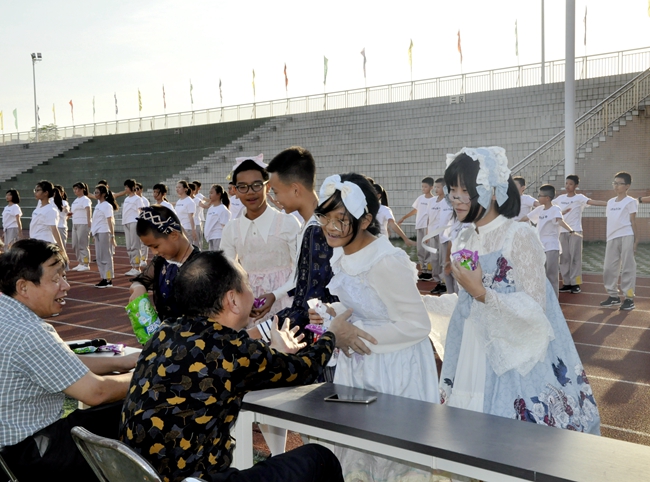 范小星校长等领导为获奖班级颁发奖状,并现场就各年级的整体表现、精神风貌作出点评,向现场的年级师生发出“积极参与常规广播操等体育运动”的号召倡导,鼓励师生在校园的学习生活中注重自我锻炼,争取塑造强健的身体素质,在校运会、广播操等竞技比赛中赛出水平、创出荣誉也赛出青春。