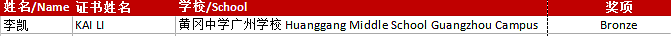 李凯同学在平常的学习中取得了优异的成绩,同时曾在BBO(英国奥林匹克竞赛)中获得铜奖。