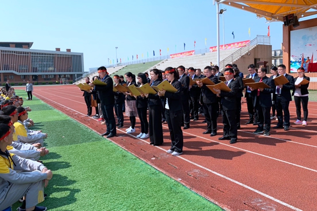 “三年一剑蓄势待发,百日拼搏一飞冲天!”曾锋主任作为教师代表分享自身从事初中毕业班教学管理的切身体会,回顾感慨过去陪伴学子努力学习、健康成长的时光点滴,强调学校每一位老师都是学生们学习成长路途上最亲密伙伴、最信任战友,更向全体九年级学子发出不惧艰辛、顽强奋进的响亮号召。