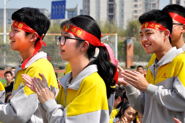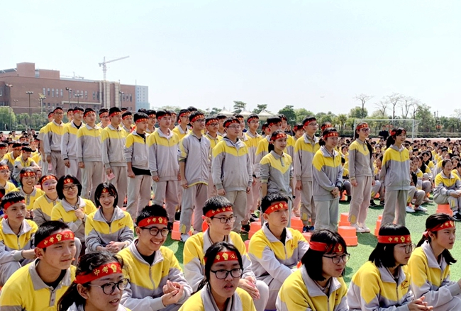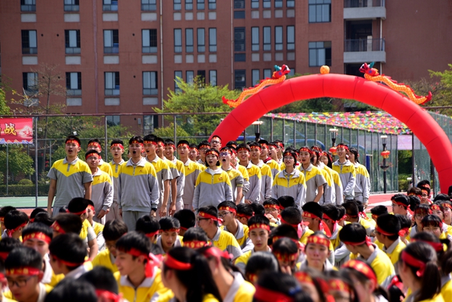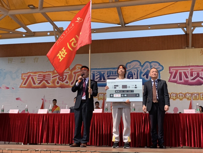揭牌百日计时、承接鲜红军旗、高呼班级宣言……