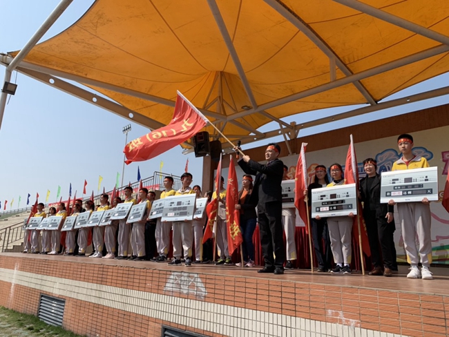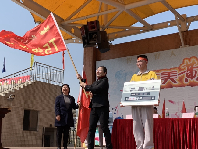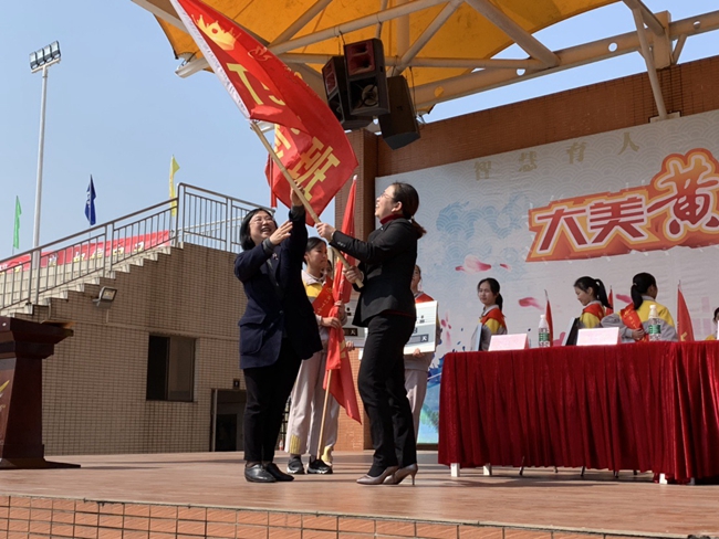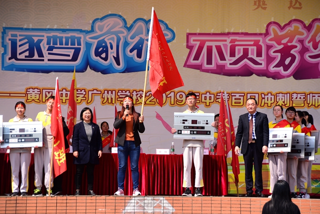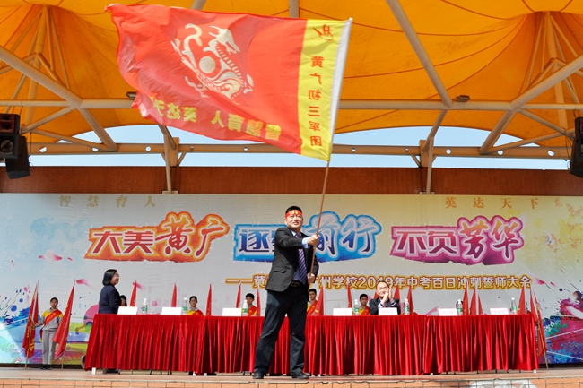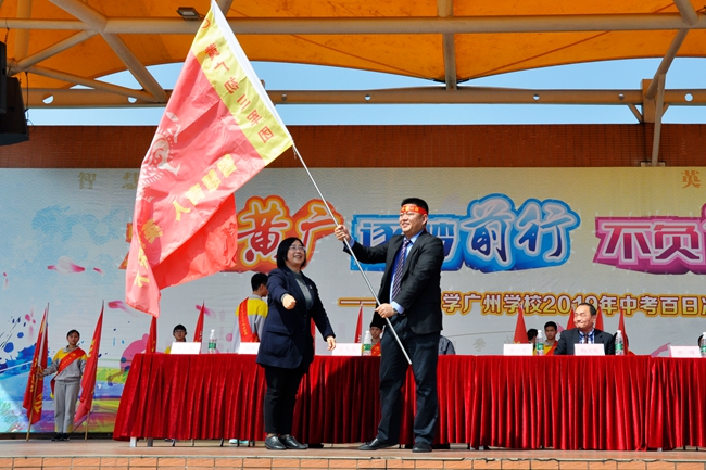 从校长手中交付出去的每一面战旗,承载着不一般的使命,在各班师生高呼理想、呐喊青春的每一个瞬间热烈腾飞,象征着黄广学校中考学子们正熊熊燃烧的烈火斗志。