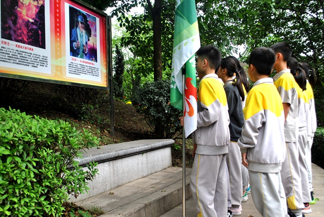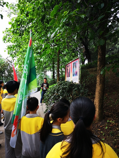 在学校团委张森林书记的引领解读下,学生们认真阅读陵园内的解说展板及碑牌文字,务求在活动前了解这背后的每一段不朽风云,认识陵园内每一位受到人们怀念追思的勇士英魂。精工刻写的石碑可能会被日晒雨淋所磨蚀,但革命先辈以热血人生所立起的光荣丰碑将无惧风雨、永存于心。