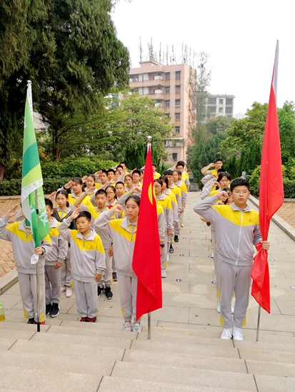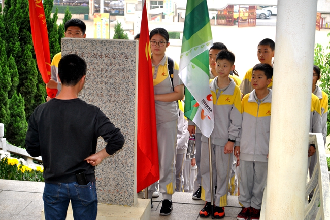 “我是中国共产主义青年团团员。坚决拥护中国共产党的领导;遵守团的章程,执行团的决议;履行团员义务,严守团的纪律;勤奋学习,积极工作;吃苦在前,享受在后;为共产主义事业而奋斗!”在团委及德育处老师们的指引倡导下,学生们以鲜艳的五星红旗为证,让庄严肃穆的烈士纪念碑作证,在满园的苍松翠柏下一一紧握右拳,重温着入团时的滚烫誓言,立志将先辈们未能走完的征程进行到底。