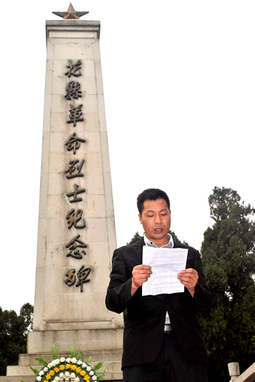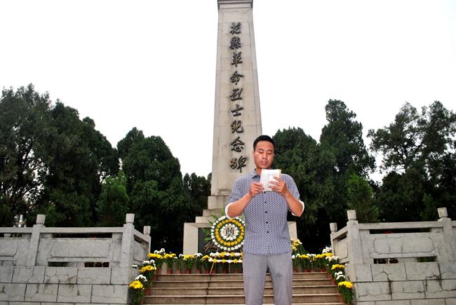 “先烈们,你们是祖国的骄傲,是人民的楷模,更是我们学习的榜样。我们要学习你们的奋斗精神,坚持理想,为建设更加美好的中国而贡献出自己的微薄之力。我们虽身处和平的年代,但我们绝不会忘记自己肩上的责任——我们是国家的希望;我们更不会忘记中华民族的伟大理想:实现中华民族伟大复兴的中国梦。从即刻起,我们将带上自己的理想,用知识武装自己,向着中国梦奋勇前进。”