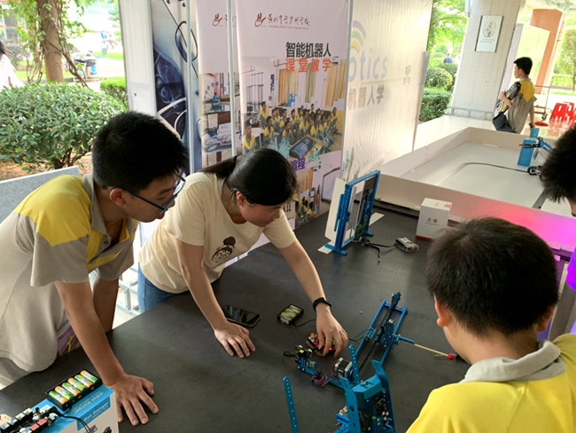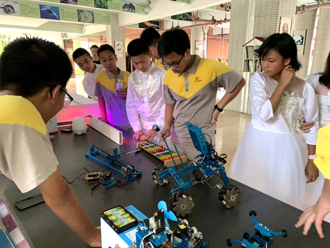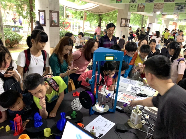 学校3D建模及打印、物联网、智能机器人王牌课程成果又再全面展出,黄广创客导师与学生们默契配合,共同以通俗易懂的耐心示范、细致分析,为参加活动的家长及孩子解答疑惑,引领来宾们逐步走进黄广精心打造的校园科技无限宇宙。