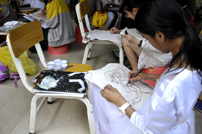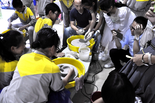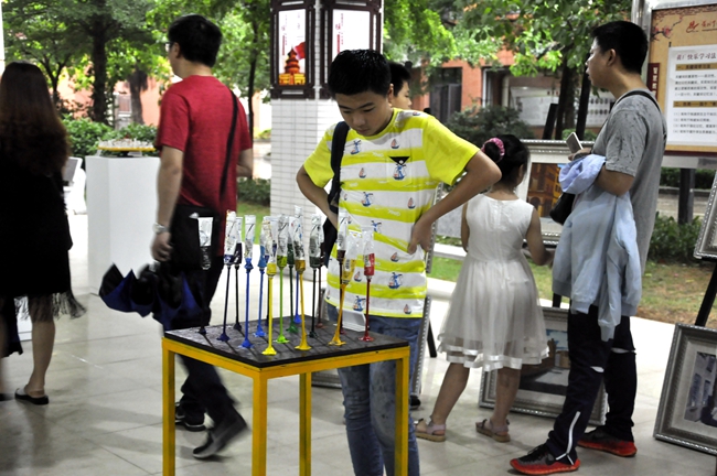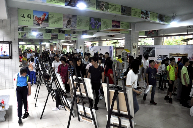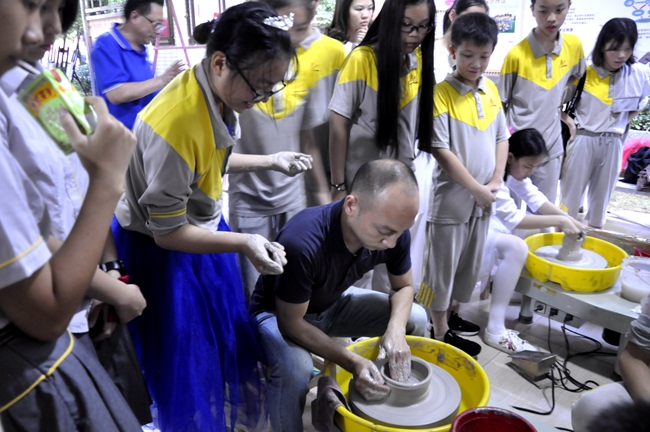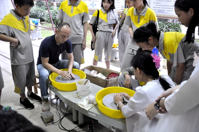 视角独特的摄影作品尽显光影交汇的冲突与质感,灵气满溢的绘画作品呈现色彩线条的默契与美感,形态各异的小小陶艺成品凝聚着学生自由无疆的创作灵感,现场的陶艺实践工坊、环保手袋彩绘吸引着驻足观看、跃跃欲试的学生争先参与……