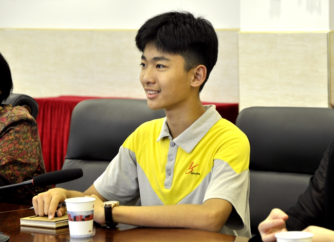 孙炜轩同学就自身参加“羊城小市长”系列比拼选拔的过程经历作出简要的介绍讲解,诚恳分享自己从数十万竞争者的大范围海选开始一路奋进,最终晋级总决赛并成功收获荣誉的体会与感受,也在对话中进一步表示自我对于“小市长”光荣背后的意义使命具备清晰而深刻的认知,并展示自己将积极践行“小市长”职责、为祖国的发展贡献青春和力量的理想决心,得到蒋副区长等现场来宾的赞赏。
