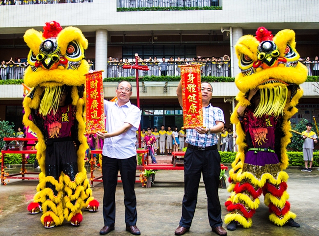 主管高中部的孙传华副校长、高中德育处黎强主任作为高中教学管理团队代表,从金狮口中拿下跃动采下的“硕果”,向现场的高三学子们送上祝福与鼓励。