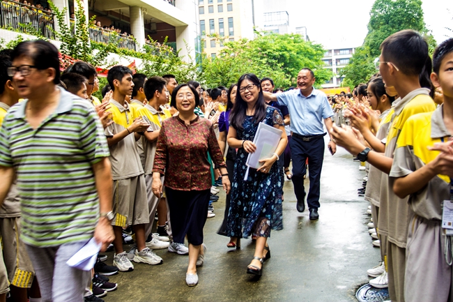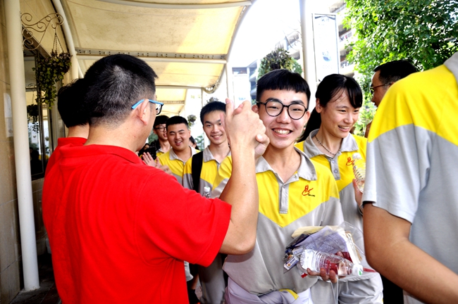 在老师们的击掌护送下,高三学生们全面启动了精神饱满、胜券在握的“战斗状态”,迈开了奔赴理想战场的坚定步伐。