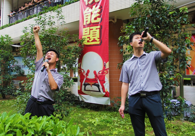 战鼓雷动,气势震天,学弟学妹们的拼力高呼传递着力量迸发的祝福!