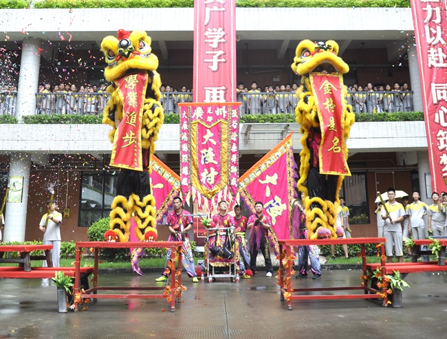 雄狮在众人热切瞩目中腾空跃起、刚强迈进,在障碍台阶中任意纵横、自由穿梭的英勇雄姿,透射绽放出无所顾忌的气势活力,恰如在中考理想征程中过关斩将、坚毅前行的黄广学子,在“惊心动魄”的学习成长考验中历经过千锤百炼,奋力向前的每一步都更加踏实、越发稳健。