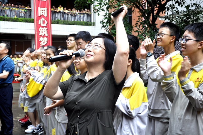 “梦想,就在前方!”此起彼伏的声声激励如星星之火,挑战自我、攻克中考的目标信念在学生们的歌声、掌声、喝彩、欢笑中,以燎原之势席卷撼动着整个校园。
