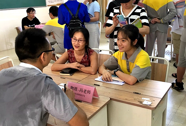 家长、学生与各科老师针对学习、德育等三方共同关注的焦点话题,进行“面对面”的会谈交流。一方面,老师根据学生的校学业水平、行为表现等作全方位汇报评估,并着眼于学生实际提出意见及建议;另一方面,家长与师生也通过近距离的对话交谈,逐步就学生下一阶段乃至长远未来的发展达成一致,为新高三扬帆起航打下坚实的共识基础。