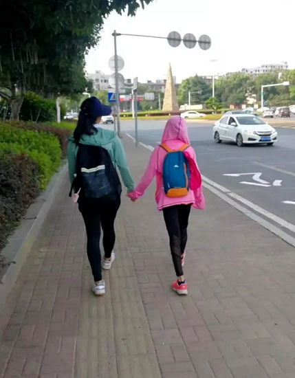 第一天,他们已徒步30公里,第二天,她们一大早5点又开始了新的旅程。不过卢悦妈妈也担心,1300多公里的路程,由于时间关系能否在开学前顺利抵达。此外11岁的妹妹年龄尚小,能否坚持也是一个问题。没想到姐妹俩都说不怕,要向当年的红军学习。姐妹异口同声说道:苦不苦,想想长征两万五,累不累,想想革命老前辈!