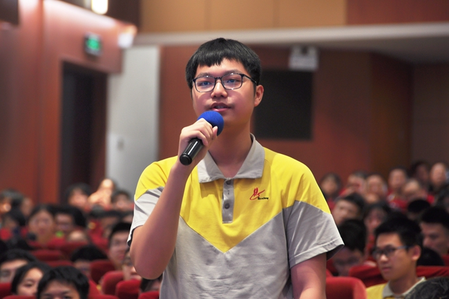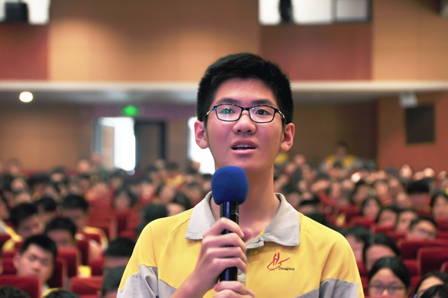 清华大学牛犇教授为同学们做了一场生动、令同学们受益匪浅的报告,联系中美贸易战等背景,精彩地阐释了清华大学的学科优势和人才培养方略,同时向同学们传授了学习和高考的“诀窍”;他特别指出:同学们要树立清晰明确的拼搏目标,在通向理想的道路上怀揣自信自强信念,无论遇到任何困难都要坚持不懈、勇敢前行。同时,他结合自身学习经验,建议同学们从难、从严、从实战出发,长期、持续、必要强度地开展科学训练,同时要注重“细致缜密”,只有这样,才能在高考中取得理想的成绩。在提问环节,同学们踊跃地提出多方面疑难问题,牛教授一一回答,使大家收获良多,现场掌声阵阵。