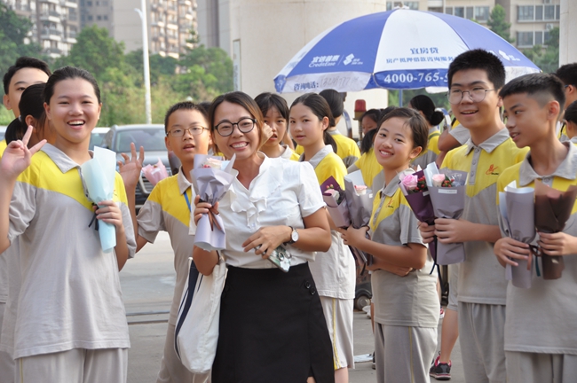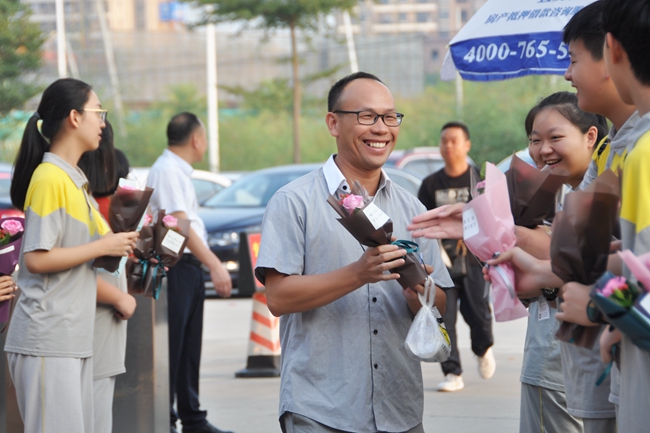 作为黄广学校教师节节庆延续至今的“传统”,收到学生们赠送的鲜花对于黄广精英教育团队的每一位成员而言并不陌生,然而领导们亲切的鼓励,学生们热情的举动,仍然令老师们感动又欣慰,一张张由心而发的笑脸无法掩藏。