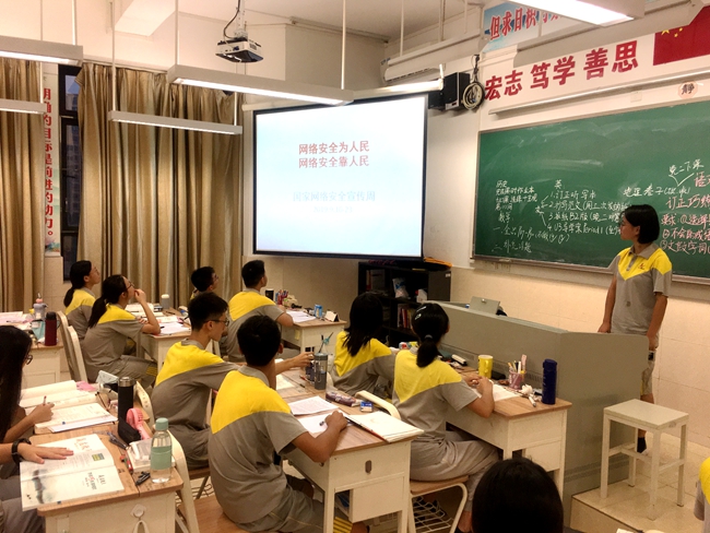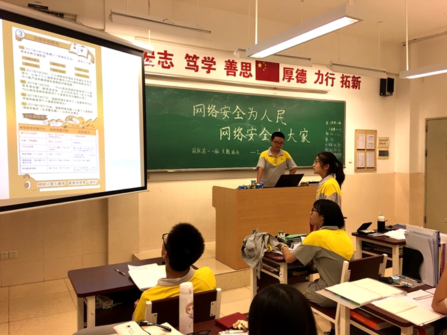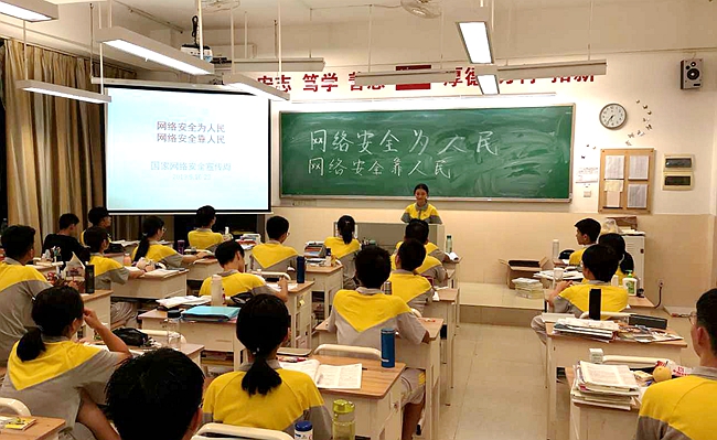 为响应国家网络安全宣传周发起“网络安全为人民,网络安全靠人民”的主题呼吁,广州市黄广中学在校内全方位开展宣传和教育,专门组织各年级班级开展“网络安全专题教育”学习活动,以贴近学生生活实际的角度及方式,向学生们普及防范网络陷阱、规避网络风险的知识及技能,通过“校园宣传+普及讲堂”双渠道有效提升学生网络安全的意识。
