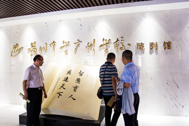 来访人员参观广州市黄广中学校史馆,对黄广学校的创校历程、教育文化、素质教育成果等作进一步观摩、了解。
