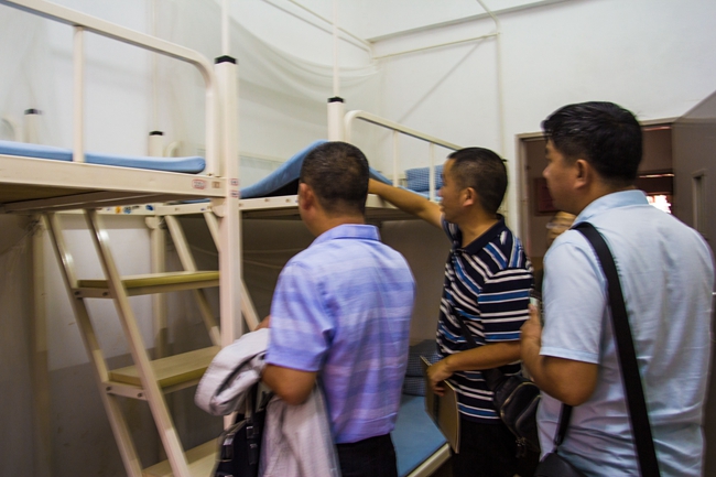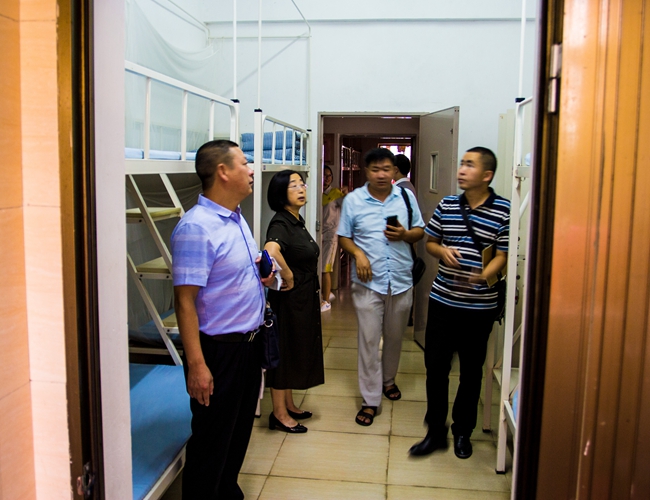 李勤龙副校长等来宾走进学生寝室,就黄广学生生活自理能力的培养展开实地考察,黄广学校现行的生活管理体系、生活技能传授、宿舍教育文化都得到来宾们的高度认可。