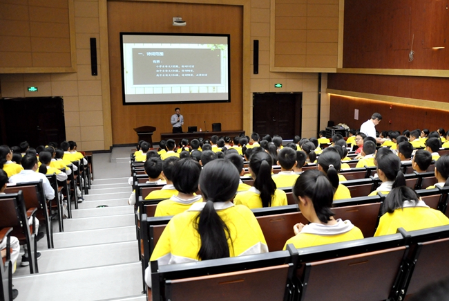 11月8日,以《未曾公开的秘籍——诗词“活记”攻略》为题的一场特别专题讲座,在广州市黄广中学西阶梯教室拉开帷幕,吸引了校内的爱好诗词的师生踊跃参与。在文学博士、广东第二师范学院教授、花都区芙蓉诗社副社长侯立兵先生的专家级讲解引领下,黄广师生从诗词鉴赏、诗词创作等角度,对中华民族历时锤炼、积淀沉厚的诗词宝藏进行“再发掘,再探究”。