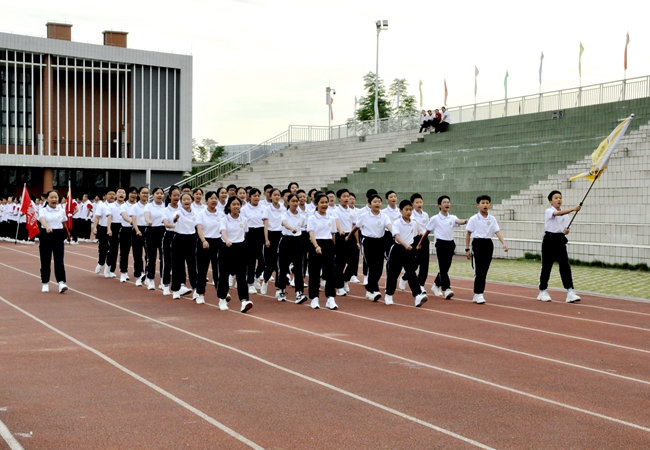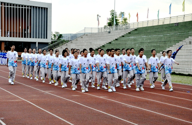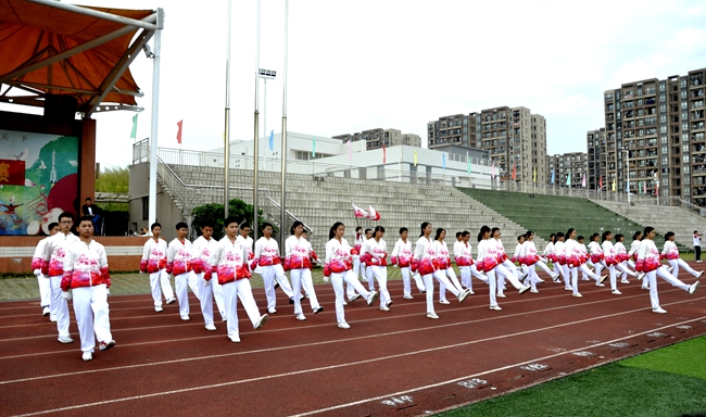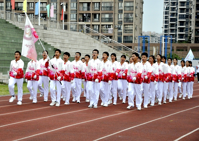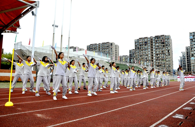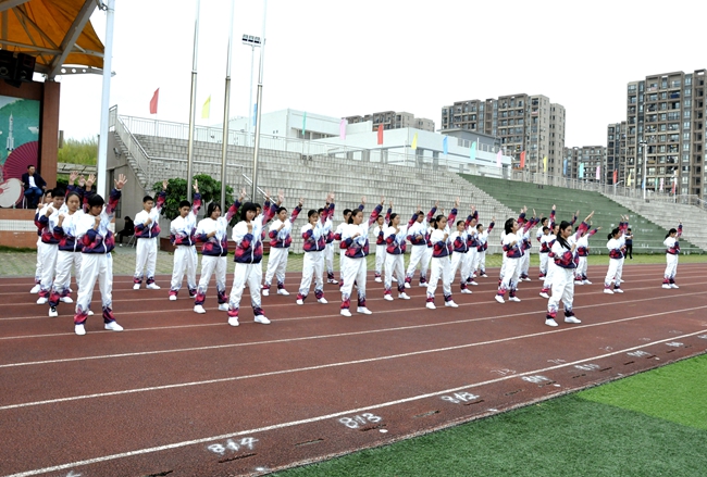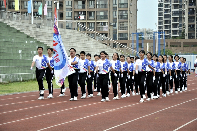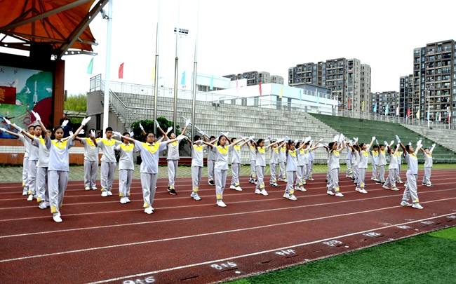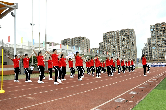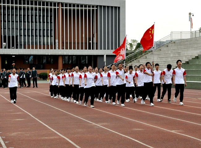即使广播操音乐未响,随着来自不同班级的团队旗帜迎风怒放,一场班级学子之间的无形比拼,自方阵入赛场时已悄然拉开序幕。