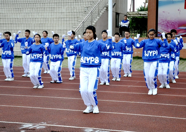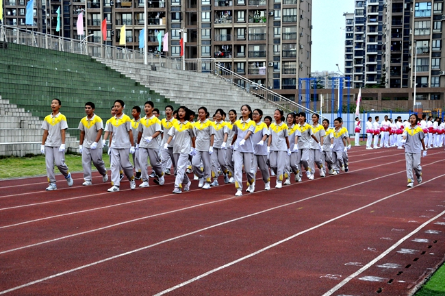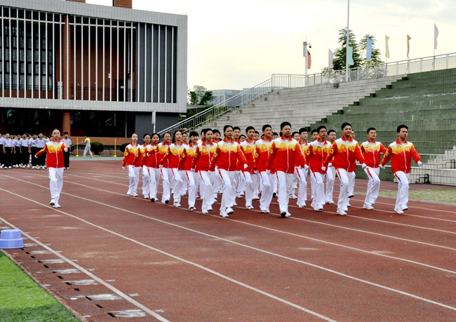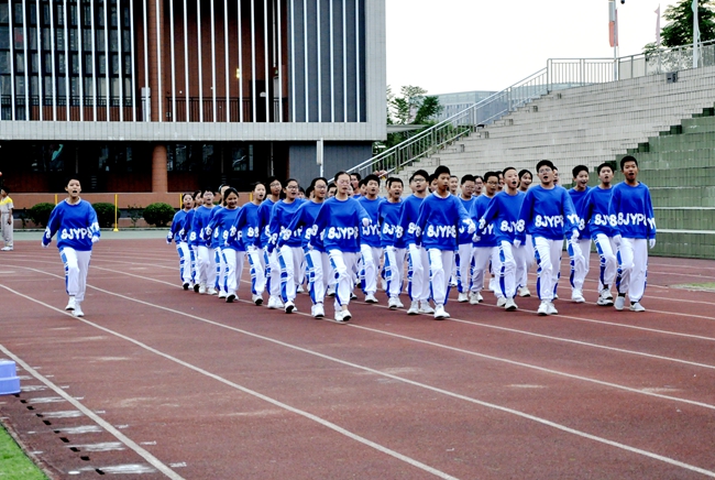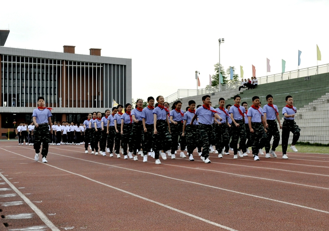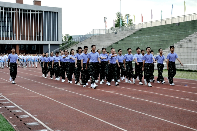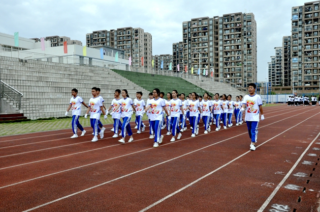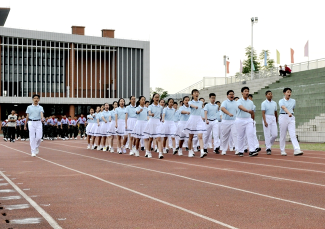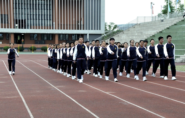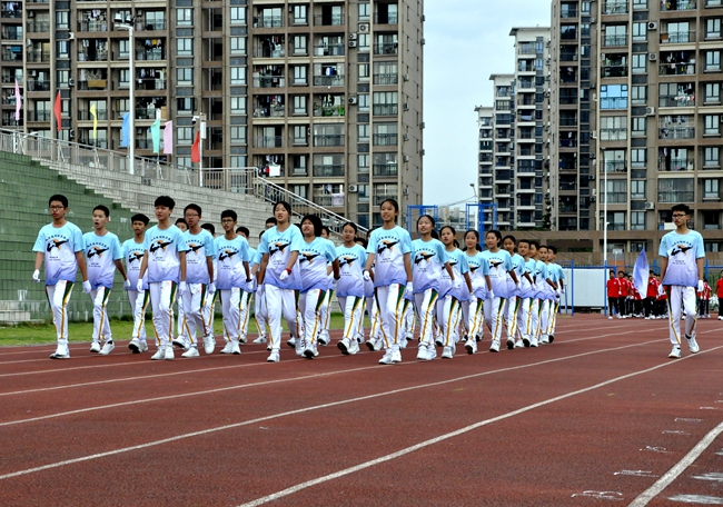 听!一声声的指令呐喊响彻运动场,整齐一致的利落步伐震撼人心……