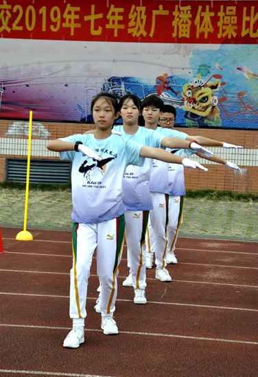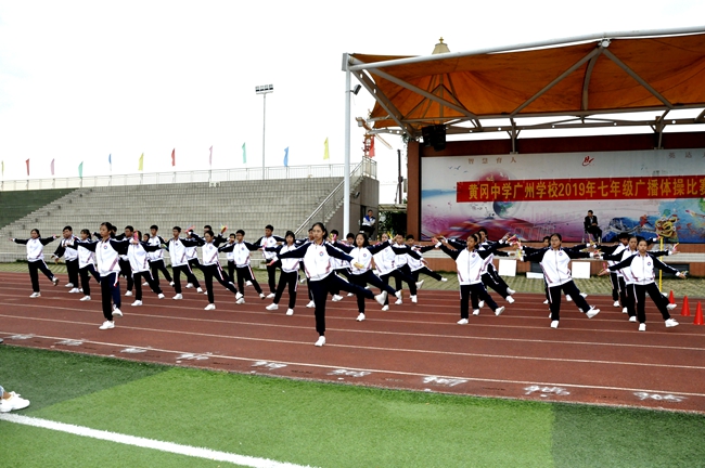 为了让学生通过趣味十足的班级竞技活动充实校园生活,在参与锻炼的过程中培养集体荣誉感、团队协作意识,促使学生在科学而适量的肢体活动中塑造形体美、健康美,展现出身为学生活力迸发、青春激扬的精神风貌,广州市黄广中学2019年七年级班级广播操大赛于近日在运动场顺利举办。