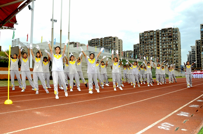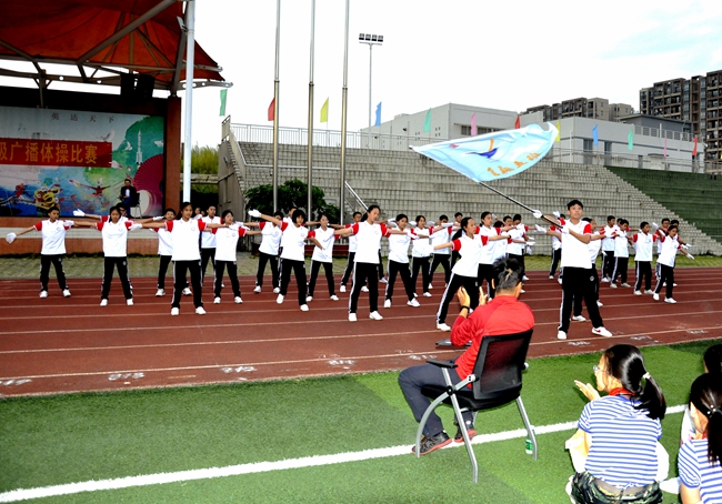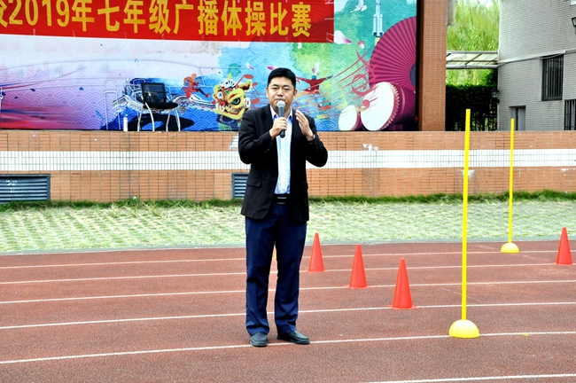 本年度广播操大赛由初中部德育处发起,联合艺体发展中心策划、组织并启动,杨文化副校长、曾锋主任等领导干部亲自莅临比赛现场,以实际行动代表学校就体育锻炼活动的开展表示支持,并对各班队伍的发挥表现与精神状态作全程观摩,为综合表现突出的班集体授予荣誉、给予鼓励。