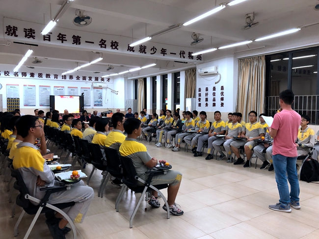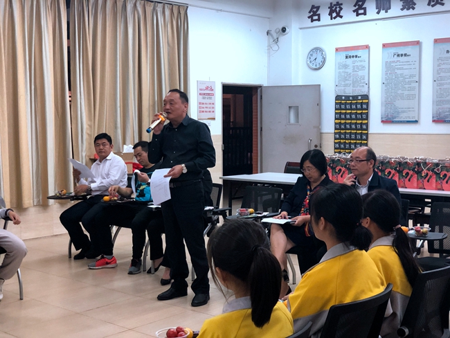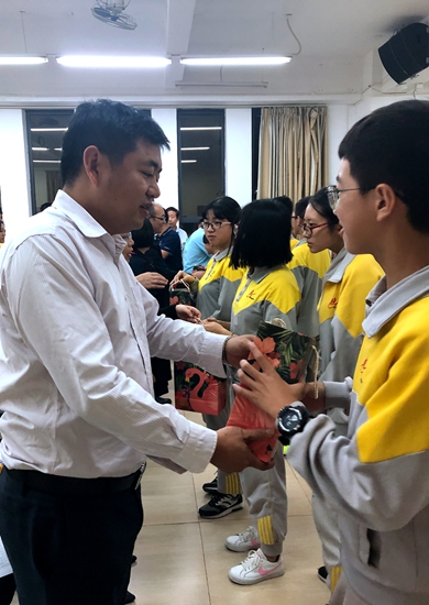 孙校长与杨校长作为高中、初中学部领导,分别向现场教职工子女讲述黄广创校办学的岁月历程,引导学生对学校如何凭“智慧教育”先进理念立足形成认识,引领学生重温学校走过从零开始、从无至有、从有至优的奋斗时光,一同指出黄广学校能一步一脚印地走在行业尖端并成为广州民办教育界的示范校、领跑者,离不开他们父母的无怨付出、敬业奉献,更强调学生们能在资源丰富、文化先进、氛围纯正的现代校园中享受优质教育、感受芳华美好、追求青春梦想,应感激作为“黄广人”的父母每一份坚持与付出。