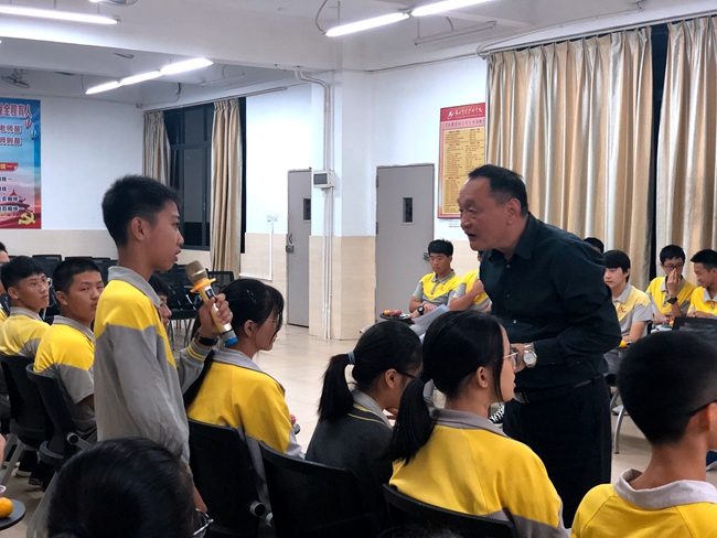 担任教职工子女代表的彭亦亲同学,即场就学校领导与老师们一直以来给予教职工子女密切的关注与真诚的关爱表示由衷感激,并讲述着自身成长岁月中的蜕变经历,分享着朝着梦想与目标奋勇向前、寻求突破的体会感受,相似的青春心路引起在场学生强烈共鸣,富有实效的学习提升实战经验也吸引了现场学生的认真聆听。