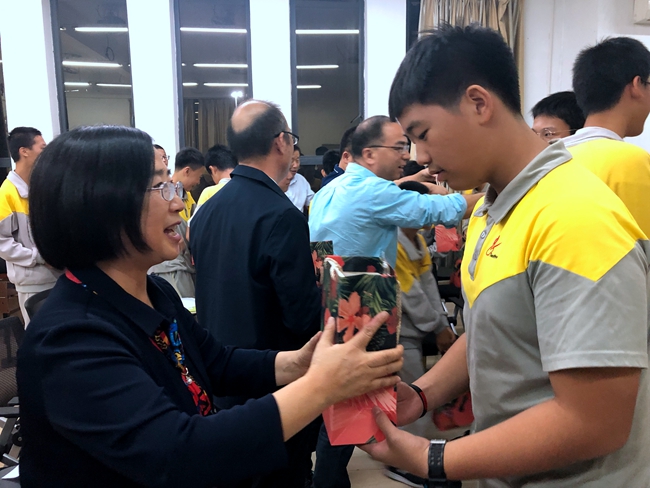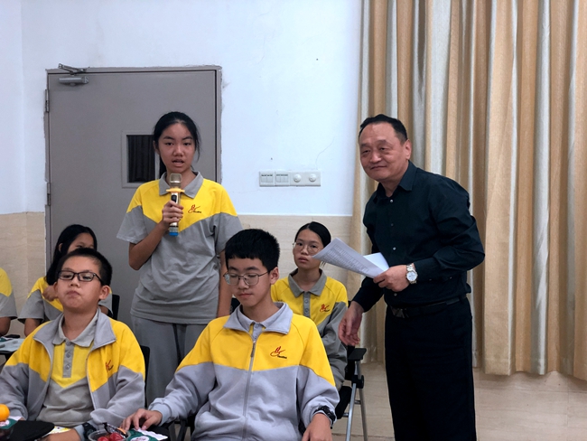 杨校长现场宣读成绩突出及进步显著的教职工子女名单,向每一位获点名表扬的优秀学子表示祝贺、给予肯定的同时,也鼓励这些学生就个人感想与心得体会畅所欲言,获得学生们积极回应。