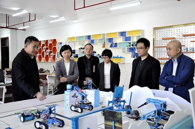 12月12日,广州市教育局信息中心秦小珊主任、创新研究部李赞坚部长、花都区教育信息装备中心骆应灯主任等莅临广州市黄广中学,就学校的信息化教育建设、创客课程等开展实地调研考察。