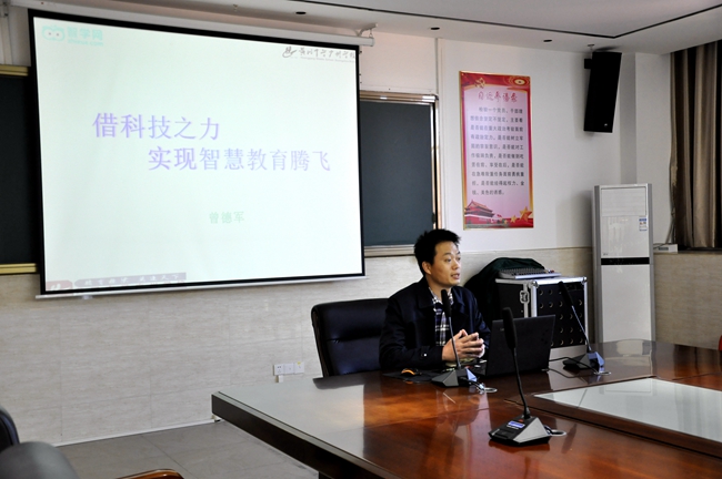 学校智学中心曾德军主任和IT部陈家良部长分别向来宾们展示黄广学校以促进学生智慧成长为目标,结合智慧教育实践和校本课程建设,与科技公司“强强联合”研发的智慧教学体系,通过大数据技术收集学生学情等第一手数据,在此基础上为学生量身定制事半功倍的个性化学习提升方案,得到来宾们的高度评价。