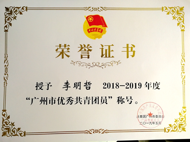 荣誉:广州市优秀共青团员