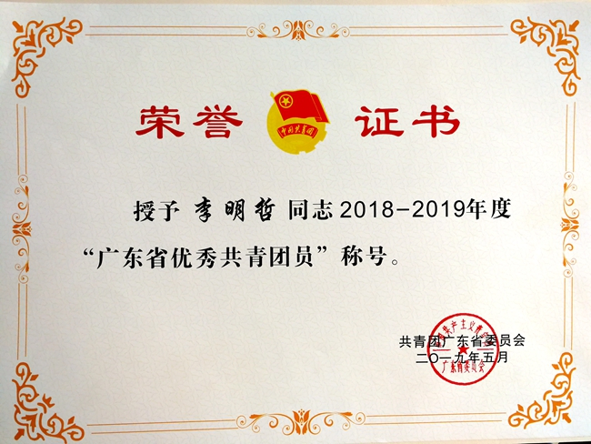 荣誉:广东省优秀共青团员